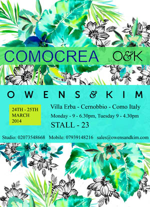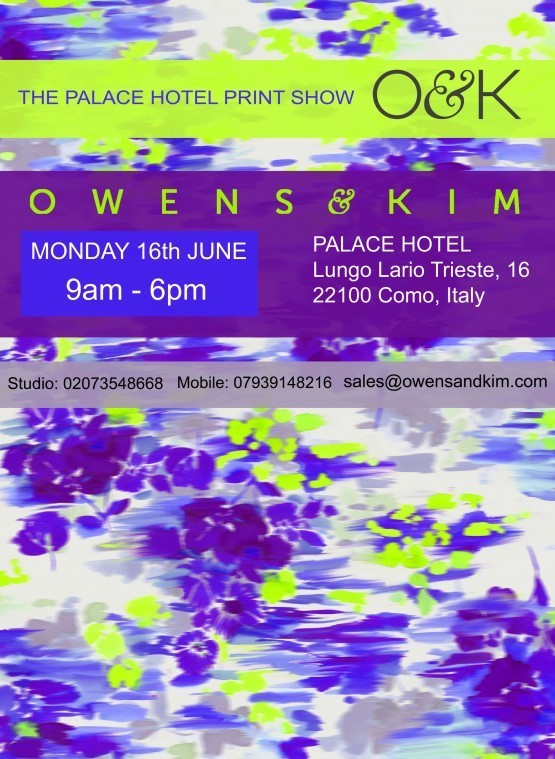 O&K will be exhibiting at The Palace Hotel Print Show in Como on June 16th, 9am-6pm. This is a new show for 2014, as there is no ComoCrea show taking place in June. We hope you can join us. Team O&K x