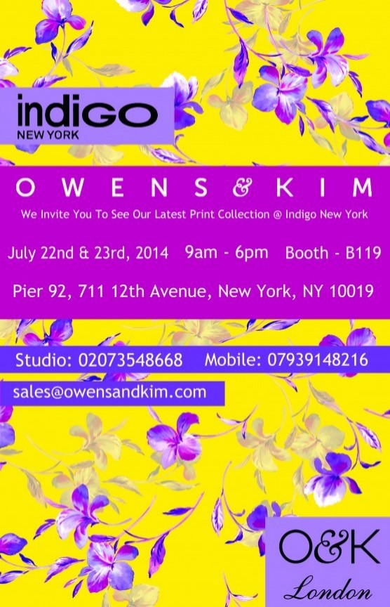 Owens and Kim will be exhibiting at Indigo New York, 22nd and 23rd July. Please note that this years event takes place at a new location – Pier 92, 711 12th Avenue, 55th Street and West Side Highway.