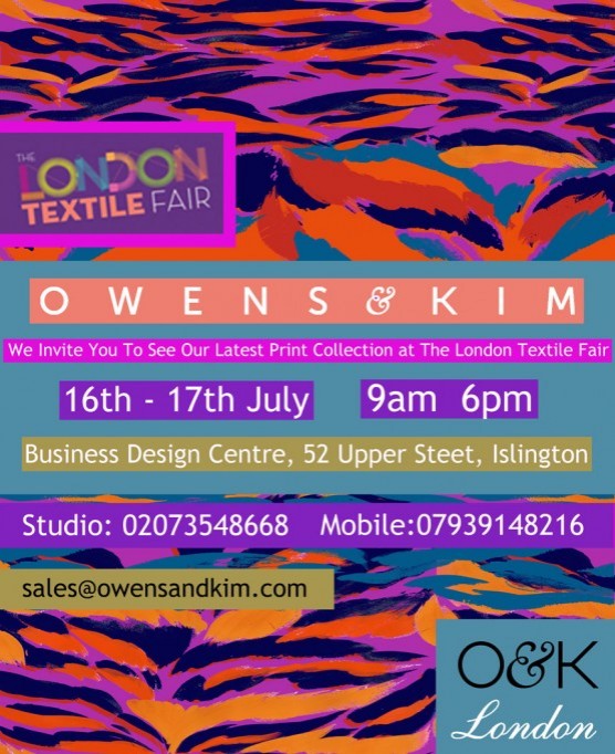 Owens and Kim will be showing at The London Textile Fair, on the 16th and 17th July. The show takes place at the Business Design Centre, 52 Upper Street, Islington, nr Angel underground station. 9am – 6pm. Come and support this show and see our latest collection, featuring Fall 14 and Resort 15 Highlights. Team O&K x